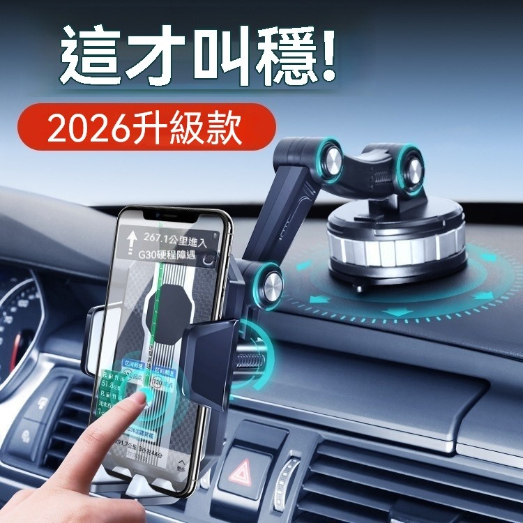 【汽車多功能手機支架】2026升級款車用手機架 超強吸盤牢牢固定 行車全程不晃動 導航視線清晰更安全