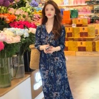 【復古顯瘦洋装】大地色植物印花融入自然,耐磨麵料防刮蹭,深色系顯高顯瘦,高級感滿滿~