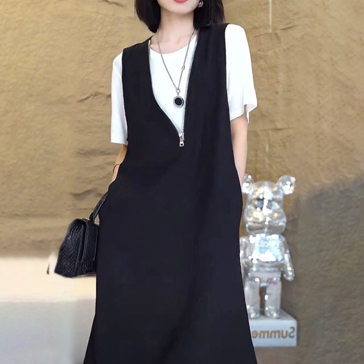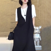 【休閒顯瘦兩件套】黑色百搭裙+時尚白T